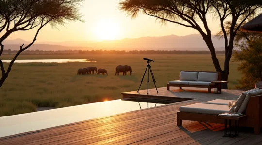 Hochpreis-Lodges verbinden erstklassigen Service mit privilegierten Lagen, oft an permanenten Wasserlöchern, wo sich Tiere Tag und Nacht versammeln. Diese festen Unterkünfte bieten klimatisierte Zimmer, hochwertige Gastronomie und häufig auch Spa-Bereiche. Der Vorteil liegt nicht nur im Komfort, sondern auch in der strategischen Positionierung: Viele Lodges sind so platziert, dass Gäste Wildtiere beobachten können, ohne das Gebäude zu verlassen.