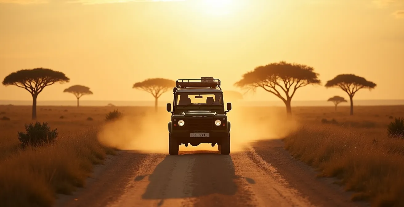 Die größte Enttäuschung einer lang ersehnten Safari ist die schleichende Erkenntnis, mehr Zeit hinter dem Steuer als mit dem Fernglas in der Hand zu verbringen. Viele Reisende fallen der „Road-Fatigue“ zum Opfer – einer Erschöpfung, die aus endlosen, staubigen Pisten und dem ständigen Druck, die nächste Unterkunft zu erreichen, resultiert. Die üblichen Ratschläge sind bekannt: „Planen Sie genügend Puffer ein“ oder „Fahren Sie nicht zu viel an einem Tag“. Doch diese gut gemeinten, aber vagen Tipps lassen die wichtigste Frage unbeantwortet: Was bedeutet das konkret in Kilometern, Stunden und Euro?