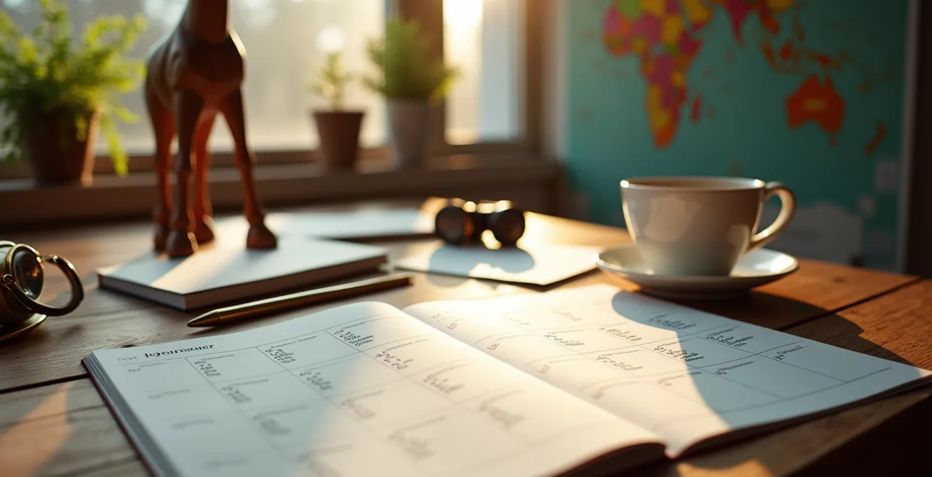 - Behandeln Sie die Safari-Planung wie ein Projekt mit einem klaren 12-Monats-Zeitplan, um die besten Lodges und Flüge zu sichern.